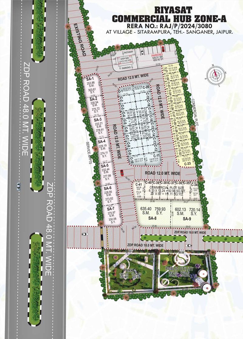 Riyasat commercial hub zone -A Spread across 1.595 hectares, this premium development offers residential plots & retail shops with top-notch infrastructure and a Jaipur-inspired theme. Enjoy ample amenities like a temple, parks, sitting areas, and well-planned pathways. Wide 12m, 18m & 48m roads ensure seamless connectivity, with Jaipur International Airport just 14 km away. A perfect blend of tradition, modernity, and convenience! JDA & RERA Approved Project Ample of Amen